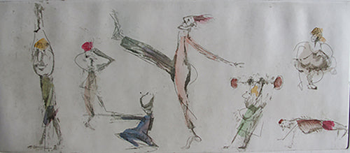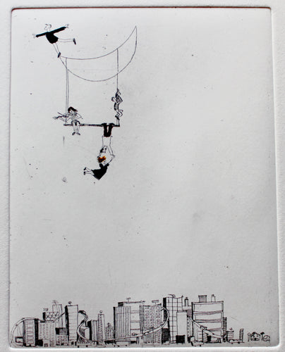 Etchings, Aquatints, Drypoints, with irony and poetry.
