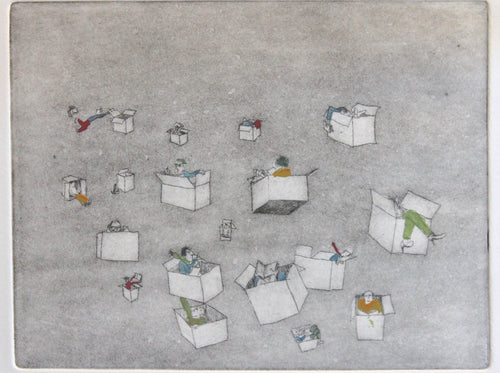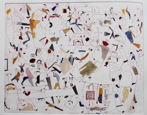 Etchings, Aquatints, Drypoints, with irony and poetry.